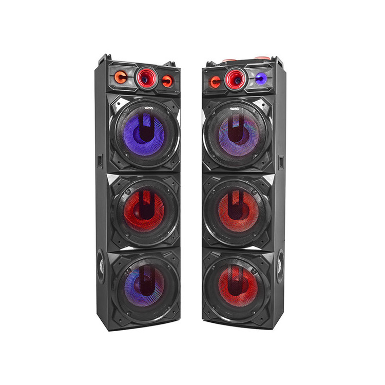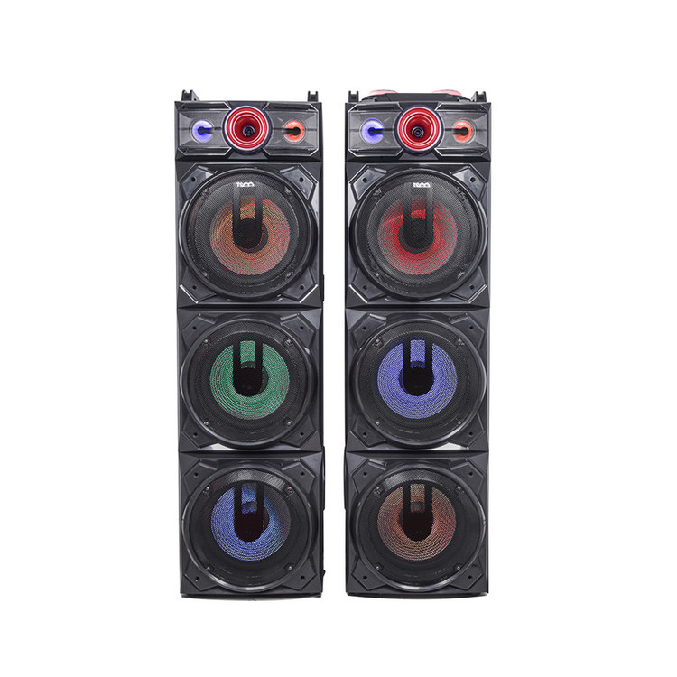 اسپیکرهای حرفهای تسکو همگی از اتصالهای متنوع و پرشماری پشتیبانی میکنند. TS 2095 نیز میتواند اتصالهای رادیویی، USB، کارت حافظه، بلوتوث و AUX برقرار کند. بلوتوث این دستگاه نسخه 5 و دامنه اتصال پایدار آن 6 متر است. این دستگاه صدا را با وضوح 75 دسیبل پخش کرده و بهصورت TWS متصل میشود. همچنین قدرت تفکیک صدا، اکولایزر و رقص نور موزیکال دارد. TS 2095 خروجی هدفون ندارد؛ اما بهجای آن دو ورودی میکروفن دارد و میتوانید با دوستتان مسابقه کارائوکه و خوانندگی بگذارید و لذت دنیا را ببرید. توان اسمی دستگاه 40500w و توان واقعی آن 180W ( 90W + 90 W) است. جنس بدنه دستگاه چوب بوده و روی هر قل 3 و مجموعا 6 عدد ساب ووفر 12 اینچی کربنی روی این اسپیکر قدرتمند نصب است.