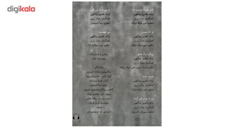 نوازندگان : یاشار خسروی (ساکسیفون)، بابک ریاحیپور (گیتارباس)، فیروز ویسانلو (گیتار)، رضا تاجبخش (پیانو)، همایون نصیری (کاخن و پرکاشن)، علی جعفری پویان، میثم موستی، میلاد عالمی (ویولن)، کریم قربانی (ویولنسل)