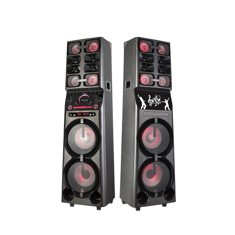 یکی از لوازم خانگی که برای برگزاری محافل و جشنها برای هر خانهای ضروریست اسپیکر پرقدرت است. با اسپیکرهای تسکو مدل TS 2096 علاوه بر یک اسپیکر قدرتمند و باکیفیت از طراحی زیبای آن نیز میتوانید لذت ببرید. با قابلیت کارائوکه در این اسپیکر با دوستان خود لحظات زیبا و خاطرهانگیزی را رقم بزنید. ابعاد این اسپیکر تسکو مناسب جا به جایی و قرارگیری در فضاهای مختلف است. این اسپیکر جذاب تسکو دارای قابلیت TWS است که برای اتصال دو بلندگو به هم به کار میرود. اسپیکرها از نوع Tower بوده و با ظاهر بسیار زیبا برای جلوه دادن به فضای شما بسیار جذاب است. با اتصال این دو اسپیکر به هم امکان پخش موسیقی فراهم میشود. در ادامه با مدل TS 2096 بیشتر آشنا خواهیم شد. دو اسپیکر با ابعاد 303×304×1303 میلیمتر مناسب قرارگیری در مجالس و فضای باغ است. یک عدد درگاه USB روی این اسپیکر قرار گرفته که برای پخش موسیقی از طریق فلش به کار میآید. روی بلندگوهای چوبی TS 2096 مجموعاً 4 عدد ساب ووفر 10 اینچی قرار دارد که با نورپردازی RGB در تاریکی جلوه زیادی به مجالس شما میبخشد. جنس این ساب ووفرها کربنی بوده و وزن آنها به صورت خالص برابر 22.95 کیلوگرم و به صورت کلی 23.95 کیلوگرم است. ساب ووفرهای این دو بلندگو به ابعاد 10 اینچ صدا را با کیفیت فوقالعادهای خارج میکنند. اسپیکرهای مشکی TS 2096 با نورپردازی RGB و طراحی زیبا مورد علاقه اکثر سلایق قرار میگیرد. دو پورت ورودی برای میکروفون این دستگاه در نظر گرفته شده است. ظاهر این اسپیکر با رقص نور موزیکال جلوه بسیار خاصی به خود میگیرد. از آنجایی که این اسپیکر دارای دارای چرخ جهت حمل و جا به جایی است حرکت دادن آن بسیار راحت است.