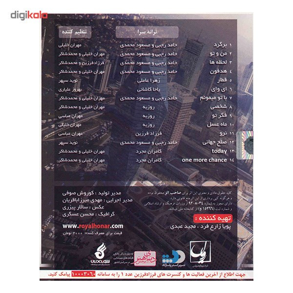 نوازندگان: علی جعفری پویان، میلاد عالمی، پدرام فریوسفی، مهران خلیلی، مهرداد معافی، سعید بنازاده، مسعود همایونی، فیروز ویسانلو، آرمن کشیشی، بابک صفرنژاد، یاشار خسروی، آرمین قیطاسی، بهنام حکیم، احمد امینپور، کسری خدیور