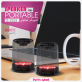 متاسفانه این کالا در حال حاضر موجود نیست. میتوانید از طریق لیست بالای صفحه، از محصولات مشابه این کالا دیدن نمایید.اسپیکر پرتابل TS 2323 تسکو محصولی جدید از برند تسکو که یک اسپیکر بسیار شیک طرح آهنربایی ، در عین حال حرفه ای با قابلیت نمایش رنگی درون آن می باشد . این اسپیکر برند TSCO با طراحی خاص خود هم به صورت جداگانه هم به صورت آهنربایی میتوان به راحتی حمل کرد و جلوه ی فوق العاده زیبا به روی میز شما می دهد. اتصال بی سیم از طریق بلوتوث ورژن 5.0 به تمامی دستگاه های هوشمند ، Aux از ویژگی های TS 2323 می باشد