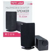 از اسپیکر های دو تیکه در لپ تاپ، کامپیوترهای خانگی، VCR و بعضی مواقع برای گوشی کردن آهنگ به وسیله گوشی موبایل استفاده میشود.استفاده از اسپیکری جدا از اسپیکر داخلی کامپیوتر، برای اکثر کاربران و بهخصوص دوستداران موسیقی و کسانی که به کیفیت صدا و تجربه کاربری خود اهمیت میدهند، تجربه بسیار خوشایندی است. اسپیکر «TS 2064» محصولی جدید از برند تسکو با طراحی مکعب مستطیل است. این اسپیکر از پلاستیک و روکش پارچه ای باکیفیت ساخته شده است که از امکانات مناسبی بهره میبرد. این وسیله دستگاهی مناسب برای دوستداران موسیقی است و کاربر بهوسیله آن میتواند با کیفیت زیادی به موسیقی مورد علاقه خود گوش دهد.اسپیکر «TS 2064» از دسته اسپیکرهای دوتکه است. این وسیله به گونهای طراحی شده است که به راحتی روی میزکار قرار میگیرد و از آن میتوان برای کامپیوترهای دسکتاپ و نوتبوک استفاده کرد. در قسمت بالای یکی از اسپیکرها یک پیچ ولومی برای تنظیم میزان صدای دستگاه تعبیه شده است. این اسپیکر برای اتصال صدا از جک 3.5 میلیمتری و همچنین برق موردنیاز اسپیکر «TS 2064» از طریق کابل USB تأمین میشود؛ سپس کانکتور 3.5میلیمتری آن را به گوشی موبایل یا دیگر دستگاههای مورد نظرتان وصل کرده و از صدای پخششده لذت ببرید.. کابل صوتی این دستگاه دارای طول 1.2 متر است ، شعاع کارکرد نسبتا مناسبی را در اختیار کاربر قرار میدهد. توان خروجی این اسپیکر نیز 6 وات است. این اسپیکر رومیزی وسیلهای کوچک و در عین حال کاربردی است که میتواند به سادگی کیفیت صدای دستگاه کامپیوتری شما را افزایش دهد و تجربهای بسیار دلنشینتر نسبت به قبل برای شما رقم بزند. توان خروجی این اسپیکر 6 وات در حالت RMS است که نشان دهنده کیفیت و رسایی بالای صداست. ابعاد کوچک این محصول، آن را برای استفاده در کنار لپتاپ مناسب ساخته است. نسبت سیگنال به نویز در اسپیکر «TS 2064» برابر با 65 دسیبل است.