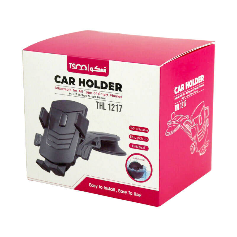 هولدر خودرو تسکو مدل THL 1217 با وزن کم و ابعاد مناسب برای انواع گوشی تا سایز 7 اینچ می باشد. سری این محصول به صورت 360 درجه قابلیت چرخش دارد و ارتفاع آن متناسب با وضعیت کاربر قابل تنظیم است.