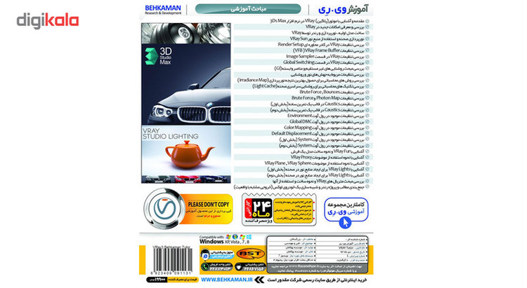 نسخه : 3 سال تولید : 1393 نوع لوح فشرده : DVD تعداد لوح فشرده : 2 عدد مدت زمان آموزش : 10 ساعت سبک آموزش : مالتی مدیا نرم افزار : دارد مباحث آموزشی 001 – مقدمه و آشنایی با موتور (Plugin) VRay در نرم افزار 3Ds Max 002 – بررسی و معرفی امکانات جدید در VRay 003 – ساخت مدل اولیه ، نورپردازی و رندر توسط VRay 004 – نورپردازی صحنه و استفاده از منبع نور VRay Sun 005 – بررسی تنظیمات VRay در کادر محاوره ای Render Setup 006 – بررسی تنظیمات VFB (VRay Frame Buffer) 007 – بررسی تنظیمات VRay در قسمت Image Sampler 008 – بررسی تنظیمات VRay در قسمت Global Switching 009 – بررسی مبحث روشنایی های غیر مستقیم و عناصر وابسته (GI) 010 – بررسی تنظیمات مربوط به جهش های نور و روشنایی 011 – بررسی روش های محاسباتی برای حصول بهترین نتیجه نور پردازی (Irradiance Map) 012 – بررسی تکنیک های محاسباتی برای روشنایی سراسری صحنه (Light Cache) 013 – بررسی تنظیمات Brute Force , Bounces 014 – بررسی تنظیمات Photon Map و Brute Force 015 – بررسی تنظیمات Caustics در قالب یک تمرین ساده (بخش اول) 016 – بررسی تنظیمات Caustics در قالب یک تمرین ساده (بخش دوم) 017 – بررسی تنظیمات موجود در رول آوت Environment 018 – بررسی تنظیمات موجود در رول آوت Global DMC 019 – بررسی تنظیمات موجود در رول آوت Color Mapping 020 – بررسی تنظیمات موجود در رول آوت Default Displacement 021 – بررسی تنظیمات موجود در رول آوت System (بخش اول) 022 – بررسی تنظیمات موجود در رول آوت System (بخش دوم) 023 – آشنایی با VRay Fur و نحوه ساخت مدل یک فرش 024 – آشنایی با نحوه استفاده از موضوعات VRay Proxy 025 – آشنایی با نحوه استفاده از موضوعات VRay Plane , VRay Sphere 026 – آشنایی با VRay Lights برای ایجاد منابع نور در صحنه (بخش اول) 027 – آشنایی با VRay Lights برای ایجاد منابع نور در صحنه (بخش دوم) 028 – بررسی مبحث متریال های VRay و نحوه ساخت و استفاده از آنها 029 – جمع بندی مطالب و پروژه رندر و شبیه سازی یک خودروی لوکس (خروجی مشابه با واقعیت)