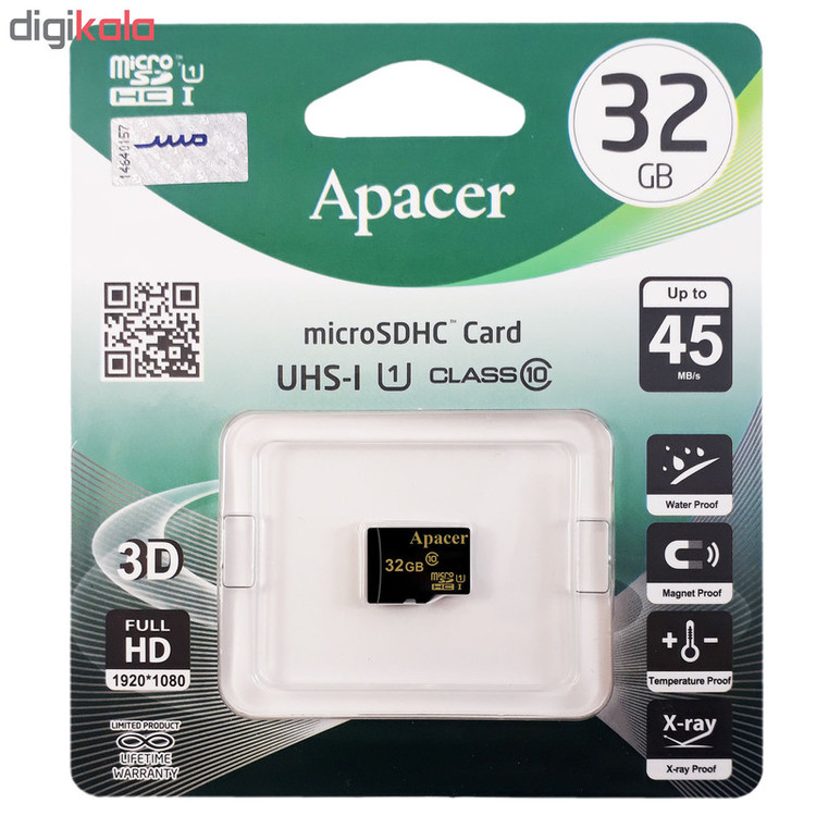 کارت حافظه microSDHC اپیسر مدل AP32GA کلاس 10 استاندارد UHS-I U1 سرعت 45MBps ظرفیت 32 گیگابایت
