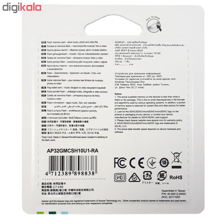 کارت حافظهی 32 گیگابایتی «اپیسر» از کلاس 10 و دارای استاندارد سرعت UHS-I است. نگهداری، تماشا و ثبت فایلهای ویدیویی باکیفیت Full HD، تنها به ظرفیت بالا برای ذخیرهسازی نیاز ندارد؛ بلکه کارت حافظهای که در نظر گرفته میشود، باید سازگاری ویژهای برای این منظور داشته باشد. کارت حافظههای کلاس 10 مناسبترین ابزار برای این کار هستند. کارتهای این رده بدون هیچگونه لگ یا توقف، فرمت Full HD و 3D را پشتیبانی میکنند. سرعت خواندن اطلاعت در این کارت، حداکثر 45 مگابایت بر ثانیه است. این کارت با دستگاههایی که پذیرندهی کارتهای microSDHC و microSDXC هستند، سازگار است. پرتو X، تغییرات دمایی بر عملکرد کارت حافظهی اپیسر تاثیری نداشته و اطلاعات آن آسیبی نمیبیند. محدودهی دمایی برای عملکرد بهینهی این کارتها بین -40 تا +85 درجهی سانتیگراد است.