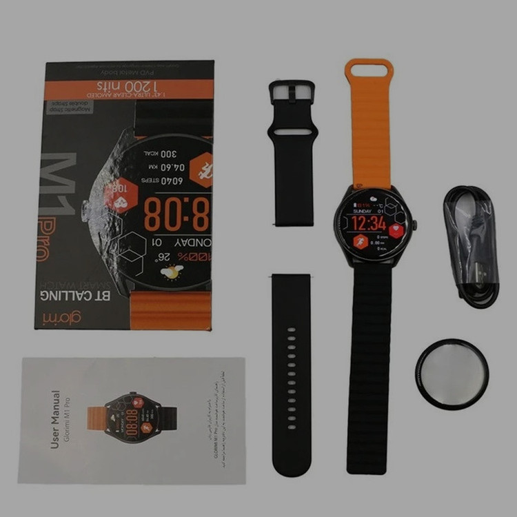 اقلام همراه : ساعت ، بند سیلیکونی مگنتی دو رنگ ، بند سیلیکونی اضافه ، گلس محافظ صفحه نمایش رایگان ، کابل شارژر مگنتی ، دفترچه راهنمای فارسی