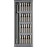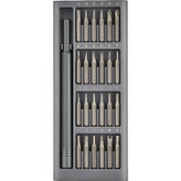 شرکت Mi یکی از زیر مجموعه های بزرگ کمپانی شیائومی است که در زمینه های مختلفی نیز فعالیت دارد و محصولات متنوعی نیز تولید می کند. پیچ گوشتی همه کاره شیائومی Xiaomi Mi Precision Screwdriver Kit 24 in 1 Bits یکی از محصولات با کیفیت این کمپانی است. این محصول یک دستهی پیچگوشتی 12.5 سانتیمتری دارد که در عین ظرافت در تولید و طراحی از دوام و مقاومت بسیار خوبی نیز برخوردار است. این دسته از روکش ضد زنگ بهره میبرد و برای کارهای مختلفی از جمله تعمیرات عینک، محصولات الکترونیکی، اسباببازی، تلفن، لپتاپ، موبایل و غیره مورد استفاده قرار میگیرد. سریهای پیچ گوشتی این محصول از آلیاژ آلومینیوم ساخته شده و دارای حالت مغناطیسی است تا پیچهای کوچک را جذب کرده و از گم شدن آنها جلوگیری کند. دستهی پیچگوشتی این مجموعه نیز از آلیاژ آلومینیوم ساخته شده و در تولید آن از فناوری اکسیداسیون آنودایز استفاده شده تا دوام و مقاومت بسیار خوبی در برابر ضربه و خوردگی داشته باشد. این سریها با قابلیت آهنربایی با استفاده از فولاد و تراشکاری لیزری تولید شدهاند. دقت بسیار بالا در تولید این سریها منجر به تولید محصول بسیار با کیفیت با سختی HRC60 شده است. میزان مقاومت بسیار بالا در برابر سایش و خوردگی را میتوان هنگام کار با آنها تجربه کرد. این مجموعه در یک کاور با جنس آلیاژ آلومینیوم قرار دارد. داخل این کاور به 4 قسمت تقسیم شده و سریهای مختلف پیچگوشتی با کاربردهای گسترده در جای مشخص قرار دارند. پردازش ریختهگری یکپارچه در تولید این کاور سبب ایجاد قوسهای بسیار چشمنواز و مدرن در ساختار آن شده است. این کاور خوشساخت در برابر ضربه و خوردگی مقاومت بسیار خوبی دارد. گفتنی است این کاور به صورت کشویی بوده و دسترسی بسیاری آسانی به تمامی سریهای پیچگوشتی خواهید داشت. سریهایی که در این مجموعه کنار هم قرار گرفتند: 4 عدد دوسو با سایزهای SL1.5، SL3، SL2 و SL4 2 عدد ستارهای در سایزهای P2 و P5 5 عدد چهارسو در سایزهای PH000، PH00، PH0، PH1 و PH2 1 عدد سه پر در سایز Y1 5 عدد ستارهای سوراخدار در سایزهای T8H، T6H، T5HT، T10H و T15H 3 عدد ستارهای 6 پر در سایزهای T2، T3 و T4 2 عدد آلنی در سایزهای H1.5 و H2 1 عدد سری U شکل در سایز U2.6 1 عدد سری مثلثی در سایز 2.3