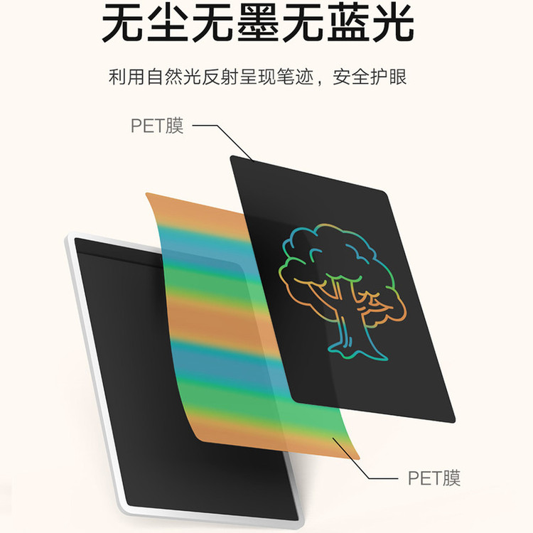 تبلت شیائومی Mijia LCD تخته سیاه کوچک نسخه رنگارنگ محصول 2023 میباشد.این دستگاه با طراحی مینیمالیستی خود که دارای رنگ سفید مات است در نگاه اول تحت تاثیر قرار می گیرد. مواد پلاستیکی با کیفیت بالا ABS بخشی از ساخت خود تبلت و همچنین قلم یکپارچه سازنده است. همچنین قلم دارای اتصال مغناطیسی به لبه است.این تبلت دارای پنل 10 یا 13 اینچی (بسته به پیکربندی) است که پیشرفت قابل توجهی داشته و دارای لایه PET یکپارچه است و در مقایسه با نسل های قبلی خود دارای صفحه نمایش LCD رنگی با امکان تشخیص تک تک یادداشت ها می باشد.علاوه بر این، این تجهیزات همچنین شامل قلم فوقالذکر با اتصال مغناطیسی و سنسور تغییر رنگ، گزینه ضبط بدون گرد و غبار یا جوهر با عمر باتری طولانی است.منبع تغذیه در این مورد توسط یک باتری دکمه ای با برچسب CR2025 تامین می شود.، با این حال آن را در بسته گنجانده نشده است. در بسته بندی فروش این محصول، خود تبلت طراحی و همچنین لوازم جانبی کاربردی را مستقیماً از سازنده پیدا خواهید کرد. این عمدتا شامل یک قلم در نظر گرفته شده برای نقاشی و همچنین دستورالعمل استفاده یا اولین تنظیم دستگاه است.همچنین برای پاک کردن صفحه کافیست سنسور بالای صهحه با انتهای قلم لمس شود.