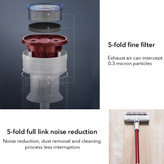 جارو شارژی شیائومی مدل Trouver Solo 10 Cordless Stick Handheld دارای باتری قدرتمندی است که می تواند با اکثر جارو برقی های سیم دار رقابت کند. این جارو شارژی مجهز به موتور دیجیتالی Brushless AERO 3.0 با قدرت مکش 18000 Pa است که می تواند 80000 دور در دقیقه بچرخد و در عین حال سطح بالایی از انرژی را حفظ کند. علاوه بر قدرت بالای Trouver Solo 10 که باعث برجسته شدن این دستگاه می شود، باتری 2000 میلی آمپر ساعتی با 6 هسته از جنس لیتیوم است که می تواند با یک بار شارژ شدن تا 48 دقیقه بی نیاز از شارژ باشد. برای شارژ کامل این جارو برقی پر قدرت حدود 3.5 ساعت زمان نیاز است. Trouver Solo 10 این قابلیت را دارد که در 3 وضعیت کاربری قرار بگیرد که می تواند انرژی باتری را بهینه سازی کند. علاوه بر این، دستگاه می تواند به حالت قائم و دستی تبدیل شود و به مجموعه لوازم جانبی مجهز شود که به کاربران کمک می کند سطوح مختلف را تمیز کنند. 3 حالت باتری به شرح زیر است: عمر طولانی باتری (Long battery life) که حالت معمولی بوده و تا 48 دقیقه کار می کند. قدرت بالا (high power) که تا 22 دقیقه اجازه کار کردن با جارو برقی را می دهد. خیلی قدرتمند (super-high power) می تواند در 8 دقیقه شارژ باتری را خالی کند. Trouver Solo 10 به برس 49 میلیمتری چرخشی مجهز است که اگر در حالت خیلی قدرتمند قرار بگیرد، برای جمع کردن موی انسان یا موی حیوان خانگی مشکلی نخواهد داشت. Trouver Solo 10 به 5 سیستم فیلترینگ پیچیده و قیلتر هپا (HEPA) مجهز شده است. فیلتر HEPA ذرات بسیار ریز گرد و غبار را که کوچک تر از 0.3 میکرون هستند، جمع آوری می کند و فیلتر های دیگر، گرد و غبار میکروسکوبی را با جدا کردن ذرات بزرگ تمیز می کنند. همچنین مخزن گرد و غبار قابل جدا سازی است.