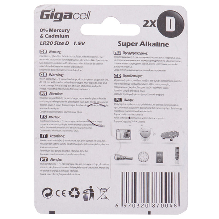 GIGACELL SUPER ALKALINE LR20 1.5V D BATTERY