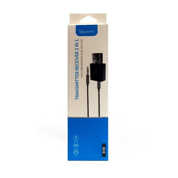 فرستنده و گیرنده بلوتوثی VERITY مدل 109 بند انگشتی دارای قابلیت 2 کاره فرستنده و گیرنده صدا از طریق بلوتوث می باشد. به هنگامی که این دانگل به درگاه USB متصل می شود برق خود را از پورت USB تامین می کند. یک چراغ قرمز رنگ در حال چشمک زدن است که چراغ قرمز به نشان حالت فرستنده می باشد. در این حالت می توان از دستگاه هایی مثل موبایل ، MP3 پلیر ، رسیور ، تلوزیون ، دستگاه های پخش کننده صدا و … به اسپیکر و باندهای دارای بلوتوث متصل کرد.