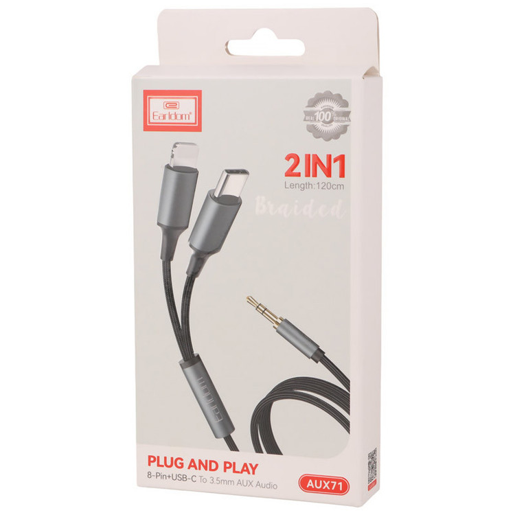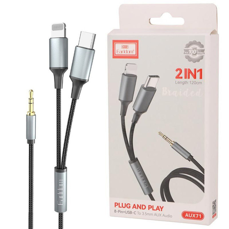 EARLDOM AUX71 AUX TO LIGHTNING / TYPE-C 1.2M CABLE