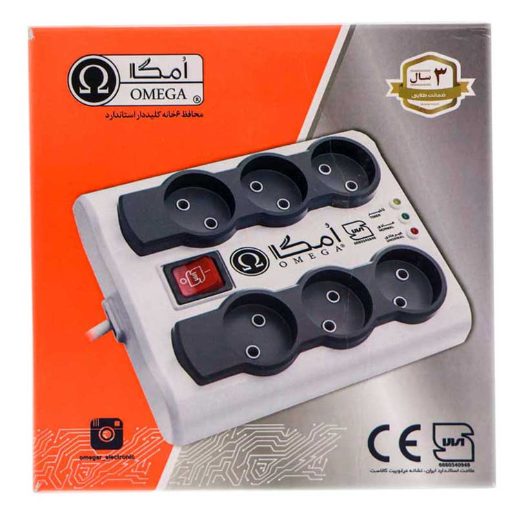 محافظ برق صوتی و تصویری ۶ خانه Omega P6000 3m