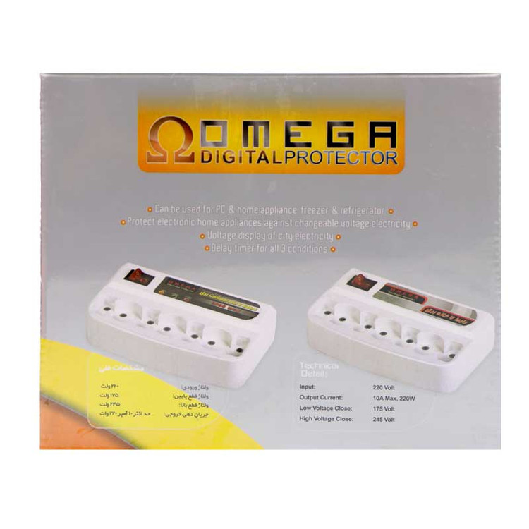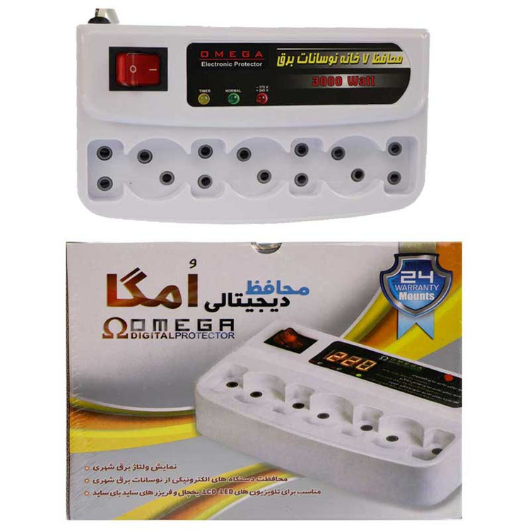 محافظ برق تلویزیون و یخچال فریزر 7 خانه Omega با کابل 3 متری