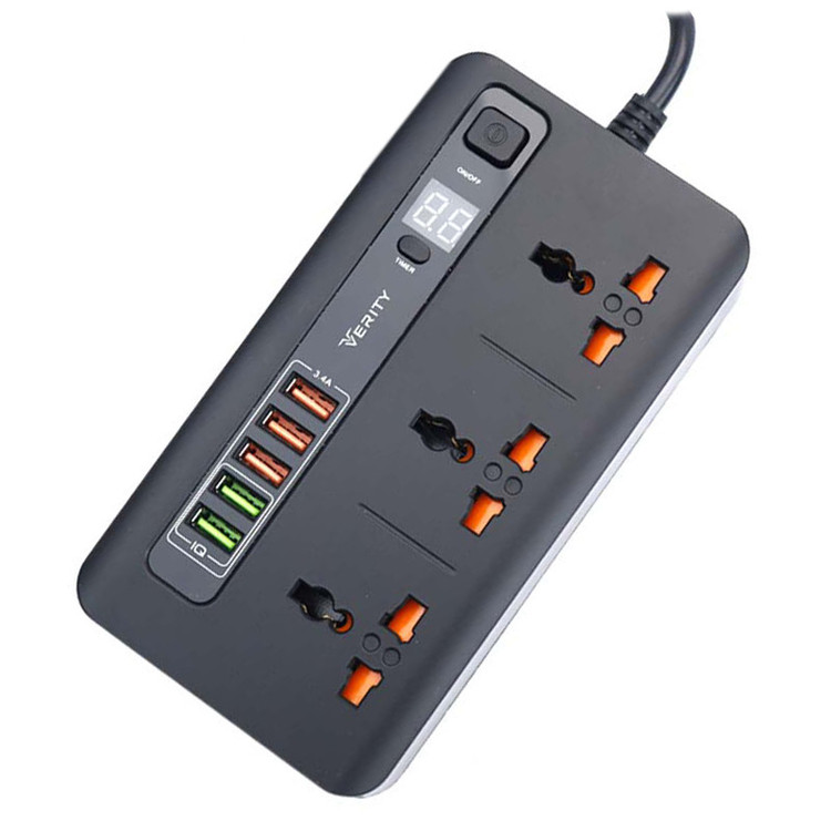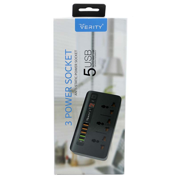 امروزه باتوجه به افزایش تعداد دستگاههای الکتریکی و الکترونیکی، نیاز به استفاده از انواع چندراهیها در هر مکانی وجود دارد. حال اگر این چندراهیها علاوهبر دارا بودن پریز برق از امکانات دیگری مانند خروجیهای USB هم برخوردار باشند کارایی آن بیشتر خواهد شد. چندراهی برق وریتی مدل PS3111 علاوه بر برخورداری از سه عدد پریز برق از 5 خروجی USB هم برخوردار است. ولتاژ این خروجیها 5 ولت و شدت جریان آنها در بیشترین حالت 3.4 آمپر است. از بین این 5 پورت یکی از آنها داری فست شارژ است که با اتصال به پورت میتوانید از این قابلیت استفاده کنید. بدنهی این چندراهی از جنس پلاستیک با کیفیت بالا ساخته شده و در برابر حرارت تا 750 درجه سانتی گراد مقاوم است. طول کابل برق آن 2 متر بوده که این متراژ به صورت استاندارد است و به راحتی میتوانید در مکانهایی که امکان وصل کردن دستگاه به صورت مستقیم به پریز وجود ندارد و یا تعداد بیشتری به پریز و درگاه یو اس بی نیاز دارید از این وسیله می توانید استفاده کنید. پریزهای برق این چندراهی از پایههای کومبو بهره میبرد و روزنههای آن به پوشش محافظ کودک مجهز است. همچنین برای قطع جریان برق در مواقع لزوم یک کلید روشن و خاموش روی این چندراهی تعبیه شده است. چند راهی وریتی داری تایمر بر روی بدنه می باشد که در مواقع مورد نیاز می توانید از آن استفاده کنید.