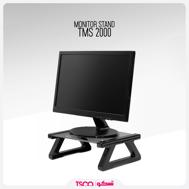 کسانی که بیشتر اوقات روز را با کامپیوتر سر و کار دارند زاویه دیدشان نسبت به مانیتور باید استاندارد و متناسب باشد تا فرم نشستن روی صندلی صحیح و فشار روی مهره های گردن وارد نشود. زیر مانیتوری ابزاری است که به منظور تنظیم ارتفاع مانیتور استفاده می شود . پایه نگهدارنده TMS 2000 محصولی از شرکت تسکو-TSCO می باشد . این پایه نگهدارنده با ارتفاع ثابت در دو سایز متفاوت تولید شده است و جنس آن از شیشه و پلاستیک می باشد .