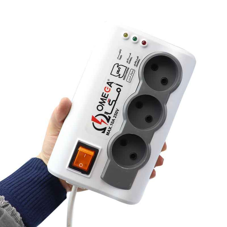 محافظ برق یخچال و فریزر ۳ راهی امگا آنالوگ کلید دار طول کابل ۳۰۰ سانتی متر