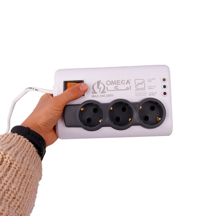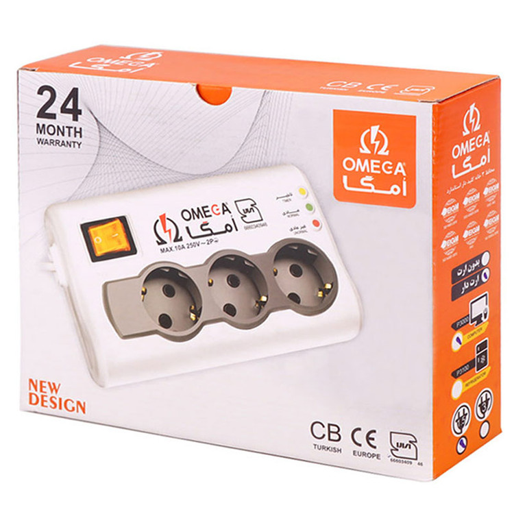 محافظ برق صوتی تصویری 3 خانه ارت دار امگا P3000 با کابل 1.5 متری