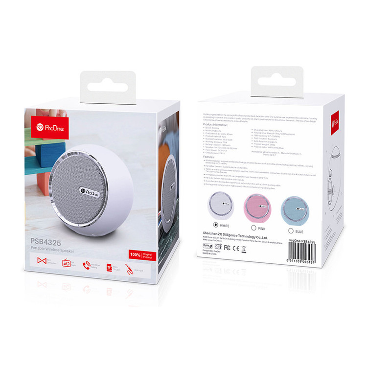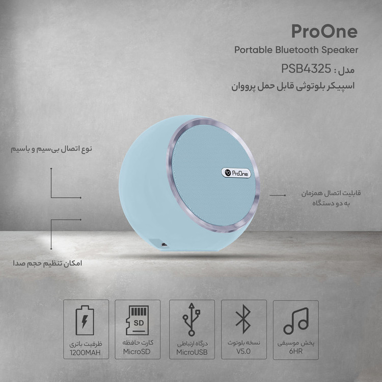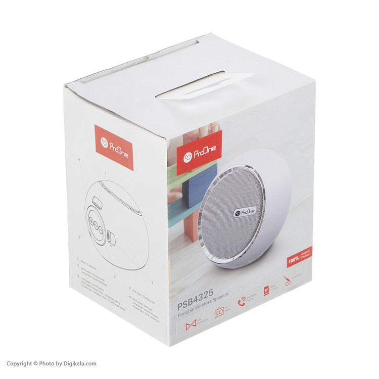 اسپیکر بلوتوثی پرووان مدل PSB4325 از جمله تولیدات شرکت پرووان است که برای رفع نیاز مردم در جهت استفاده از پخشکنندههای موسیقی تولید شده است. این اسپیکر در ابعادی معادل طول 97، ارتفاع 86 و عرض 93 میلیمتر تولید شده است و وزنی برابر 260 گرم دارد. این میزان وزن در جهت حمل و استفاده روزانه بسیار مناسب است. اسپیکر پرووان PSB4325 از یک باتری لیتیومی قابل تعویض با ظرفیت 1200 میلیآمپرساعت بهره برده است. این باتری دارای طول عمر بالایی است و به راحتی بازدهی خود را از دست نخواهد داد. شارژ اسپیکر از طریق یک درگاه MicroUsb انجام میشود و شارژ کامل دستگاه 3 ساعت زمان میبرد. پس از شارژ کامل میتوانید به مدت 6-7 ساعت از آن برای پخش موسیقی استفاده کنید. این اسپیکر از بلوتوث نسخه 5 بهره میبرد که برد موثر 10 متر دارد و موسیقی شما با فاصله گرفتن از دستگاه فرستنده قطع نمیشود. از دیگر ویژگیهای این اسپیکر میتوان به قابلیت مکالمه اشاره کرد. این اسپیکر به فناوری TWS نیز مجهز شده است. قابلیت TWS به این معنی است که شما میتوانید دو دستگاه با مدل یکسان را به یکدیگر وصل کرده و به صورت هم زمان از آنها استفاده کنید. به غیر از اتصال بلوتوث، میتوان از درگاه کارت حافظه میکرو و کابل AUX هم برای پخش موسیقی استفاده کرد.
