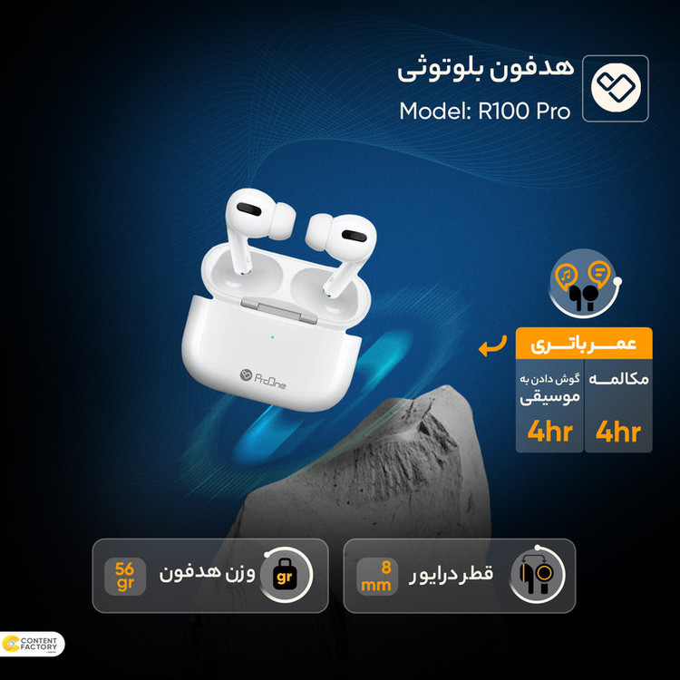 ایرپادها از جمله محصولاتی بودهاند که طرفداران خاص خود را داشتند و همیشه شرکتهای تولید کننده کالاهای دیجیتال در تلاش بودهاند تا بهترین کیفیت را به بازار عرضه کنند. شرکت پرووان، یکی از پیشتازان لوازم جانبی دیجیتال، اقدام به طراحی و تولید ایرپاد R100 pro کرده است تا بتواند گامی متفاوت در این زمینه بردارد. این ایرپاد از بلوتوث نسخه 5.1 بهره میبرد که برد موثر 10 متر را دارد. ایرپاد R100 pro دارای دو گوشی است که درون یک محفظه شارژر به مشتریان ارائه میشود. جنس بدنه این محفظه از نوع ABS و پلیمر کربن است که در مقابل حرارت مقاومت خوبی دارد. محفظه ایرپاد دارای ابعادی معادل طول 60.6، عرض 45.2 و ارتفاع 21.7 تولید شده است که وزنی معادل 56 گرم دارد. ظرفیت باتری محفظه شارژ معادل 220 میلی آمپر است و هرکدام از گوشیها ظرفیتی معادل 30 میلی آمپر دارند. شما در مجموع میتوانید تا 2بار به صورت کامل گوشیها را شارژ کنید. مدت زمان شارژ گوشیهای ایرپاد معادل 1.5 الی 2 ساعت است که شما میتوانید تا 13 ساعت آن را در حالت استندبای قرار دهید و تا 4 ساعت به صورت مداوم از آنها استفاده کنید. از جمله فناوریهای متمایز کننده این ایرپاد noise reduction است که شما هنگام مکالمه صدایی شفاف را از مخاطبتان میشنوید. از دیگر فناوریهای محبوب این ایرپاد میتوان به TWS اشاره کرد که شما هم میتوانی به صورت جداگانه از گوشیها استفاده کنید و هم به صورت هم زمان آنها را به یکدیگر متصل کرده و استفاده کنید. شارژ محفظه ایرپاد از دو طریق انجام میشود. شما هم میتوانید از طریق کابل لایتنینگ آن را شارژ کنید و هم به صورت وایرلس نسبت به شارژ آن اقدام کنید.