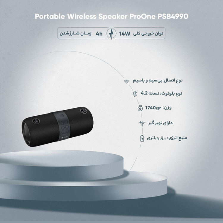 همیشه جای یک موسیقی در مهمانی و دورهمیهای دوستانه خالی است، به همین دلیل اکثریت افراد با خرید اسپیکرهای بلوتوثی قابلحمل، کار خود را راحت میکنند تا همیشه موسیقی در هر محفلی برپا باشد. همچنین با افزایش علاقهمندی مصرفکنندگان به کالاهای صوتی، اسپیکرها با مدلها و قابلیتهای متنوعی تولید شدهاند. برند پرووان، یکی از پیشتازان تولید لوازم جانبی دیجیتال، با بررسی نیاز مردم نسبت به طراحی و تولید اسپیکر بلوتوثی قابل حمل PSB4990 اقدام کرده است که ضد آب بوده و دارای استاندارد IPX6 است. این اسپیکر با ابعادی معادل طول 283، عرض 123 و ارتفاع 126 میلیمتر طراحی و تولید شده است که خود اسپیکر وزنی معادل 1740 گرم دارد. زیر اسپیکر دو پایه مسطح جهت قرار دادن اسپیکر روی سطوح طراحی شده و در قسمت بالای اسپیکر PSB4990 یک پنل کاربردی جهت قطع و وصل کردن، عقب و جلو زدن موسیقی، تغییر حالات پخش و دکمه روشن و خاموش قرار دارد. در این اسپیکر دارای رادیو و میکروفون داخلی هستند و محفظههای پورتهای اتصال USB، جک 3.5 میلیمتری صدا و ورودی شارژ اسپیکر قرار دارد. قدرت این اسپیکر در مجموع 14 وات بوده و دارای باتری 3600 میلی آمپر ساعتی است که بطور نرمال 4 ساعت زمان پخش موسیقی دارد و مدت زمان شارژ آن 4 ساعت است. اسپیکر زیبا و جذاب PSB4990 دارای رقص نور RGB است که با آهنگ تم رنگی جذابی را به تصویر میکشد.