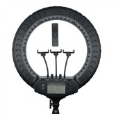 رینگ لایت RL-21 54cm در دسته رینگ لایت های حرفه ای سایز بزرگ می باشد. یکی از مزیت های این رینگ لایت نسبت به سایر رینگ لایت ها دمای نور (کلوین) گسترده تر میباشد. به طوری که بازه نوری این دستگاه از کلوین 2700 تا کلوین 6500 قابل تنظیم بوده و دمای نوری گسترده تر را دراختیار کاربر قرار میدهد. رینگ لایت RL-21 54cm ساخته شده از ABS که مقاومت بالایی نسبت به ضربه دارد و دستگاه رو از ضربات احتمالی و افتادن محافظت می کند. تکنولوژی ساخت : تکنولوژی پیشرفته ساخت لامپ های این دستگاه SMD POWER SAVING میباشد که قدرت نوردهی بالا با مصرف برق کمتر نسبت به سایر مدل ها را به ارمغان اورده است . پشتیبانی از 2 پورت USB در طراحی این دستگاه این امکان را فراهم نموده تا در حین فیلمبرداری های طولانی مدت دیگر نگران شارژ تلفن همراه خود نباشید. رینگ لایت RL-21 54cm دارای 2 دیمر در پنل جلویی دستگاه میباشد که امکان دسترسی به تنظیمات حین فیلمبرداری رو برای کاربر آسان نموده است . وجود ریموت کنترل با برد بیش از 5 متر از دیگر امکانات این دستگاه میباشپ که کنترل دستگاه را از راه دور فراهم می سازد. در طراحی این دستگاه از 3 هولدر موبایل در حلقه داخلی رینگ لایت استفاده شده است . هلدر موبایلی : وجود 3 هولدر این امکان را به شما میدهد که بتوانید به طور همزمان 3 تلفن همراه روی دستگاه نصب کنید و بتوانید هم زمان از 3 شبکه اجتماعی یا 3 پیج مختلف لایو زنده داشته باشید که برای فعالان در حوزه اموزش و سالن های زیبایی و … بسیار کاربردی می باشد. کیف مخصوص : کیف مخصوص حمل رینگ لایت از دیگر متعلقات این دستگاه می باشد . که حمل و نقل آن را آسان نموده است . رینگ لایت RL-21 54cm یک انتخاب خوب و حرفه ای برای سالن های زیبایی ، آتلیه های عکاسی و فعالان در حوزه زیبایی و تولید محتوا می باشد.