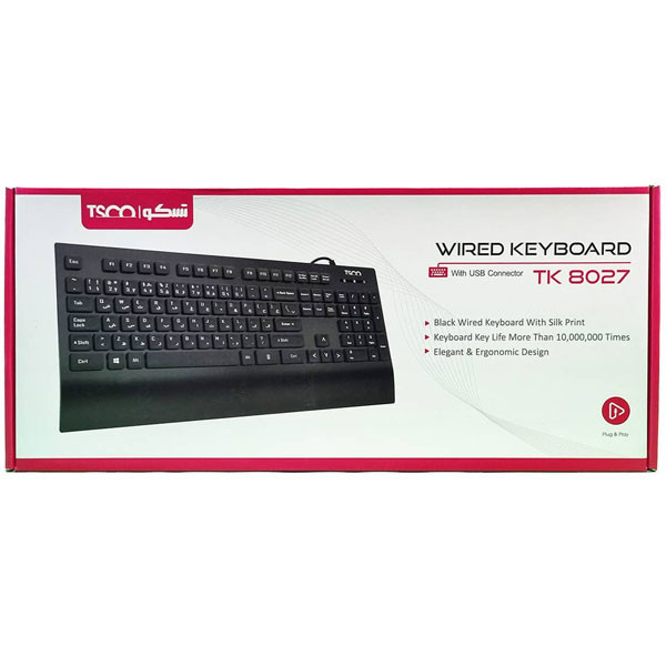 از پرکاربرد ترین لوازم جانبی کامپیوتر ها که از آن استفاده میشود، می توان کیبورد هارا نام برد.کیبورد ها در دو نوع سیمی و بی سیم به بازار فروش عرضه شده اند که هرکدام به نوبه ی خود متقاضیان خود را دارند. در هر دو مدل حرف اول را طراحی مناسب و ارگونومیک،کیفیت متریال استفاده شده و طول عمر بالا میزند. در ادامه به معرفی یکی از کیبورد های سیمی برند تسکو که به تازگی به بازار ارائه شده،خواهیم پرداخت. کیبورد های برند تسکو در بین متقاضیانی که به دنبال کیفیت و در عین حال قیمت مناسب هستند بسیار محبوب به شمار می آیند. کیبورد مدل TK 8027 از جمله کیبورد های با کیفیت این برند است که در ابعاد 2.7x17.5x45.5 سانتی متر در وزن 10±650 گرم در رنگ مشکی طراحی و تولید شده. نوع اتصال این کیبورد سیمی و از طریق پورت USB صورت میگیرد. در طراحی کیبورد مدل TK 8027 از 103 کلید با قابلیت ضربه پذیری بالغ بر 10 میلیون بار و یک کابل 1.8 متری استفاده شده. علاوه بر این 12 کلید میانبر و کاربردی و چراغ نشانگر برای کلید ها CAP LUCK/NUM LUCK نیز در این کیبورد به کار رفته. کیبورد تسکو مدل TK 8027 قابلیت سازگاری با سیستم عامل های win10/8/7/2000/98/XP/ME/NT/Vista را نیز دارد.