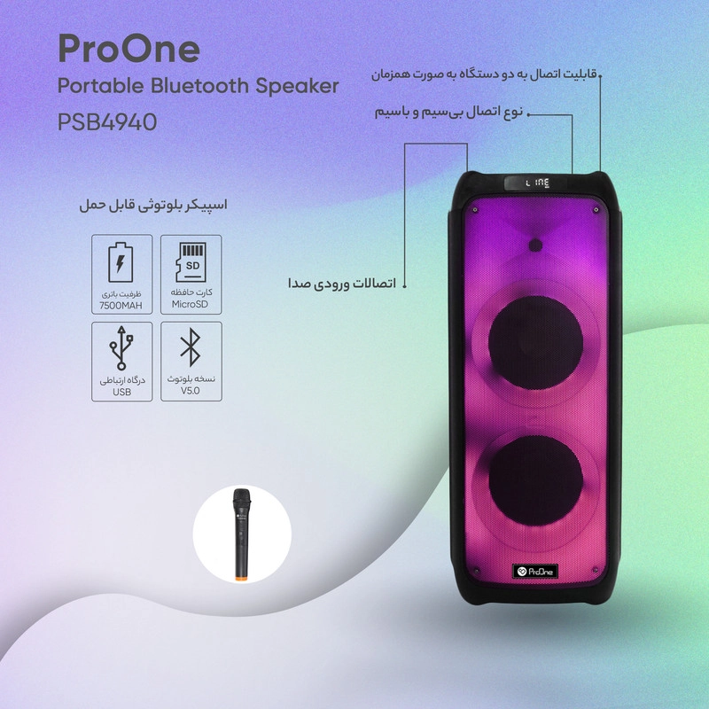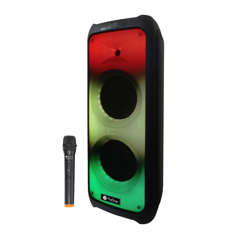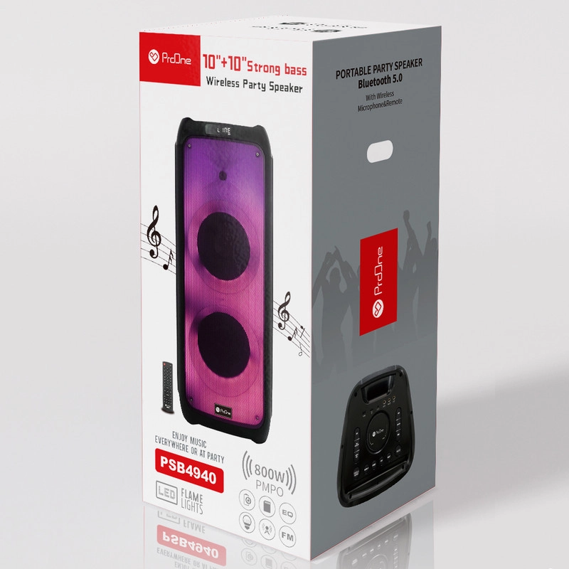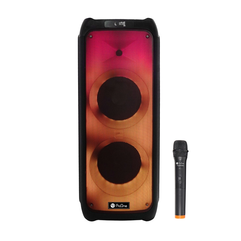 اسپیکر پارتی باکس PSB4940 محصولی از شرکت «پرووان» است که به واسطه توان خروجی بالا، صدای پرقدرت و شفافی را برای برگزاری مهمانیها و مجالس ایجاد میکند. علاوه بر حجم زیاد صدای خروجی، طراحی زیبا، افکتهای متنوع نورانی و قابل حمل بودن، این محصول را به یکی از اسپیکرهای جذاب موجود در بازار تبدیل کرده است. این اسپیکر از طریق فناوری بلوتوث، پورت USB وخروجی AUX و مموری کارت به تلفنهمراه یا پخشکنندههای مختلف صوتي متصل میشود. اسپیکر پرووان PSB4940 پرووان انرژی مورد نیاز خود را از طریق یک باتری داخلی لیتیوم یونی پر قدرت با ظرفیت 7500 میلی آمپر ساعت تامین میکند که برای پخش موسیقی به مدت 3 ساعت جوابگو هست. شارژ شدن کامل این محصول تنها 8 ساعت زمان میبرد که با توجه به ظرفیت آن، زمان نسبتا مناسبی میباشد. برای شارژ این دستگاه میتوان از منبع تغذیه برق شهر و یا منبع تغذیه ولتاژ ثابت(نظیر باتری ماشین) استفاده کرد. توسط بلوتوث و یا همان قابلیت TWS میتوانید دو دستگاه PSB4940 را به طور همزمان به یکدیگر متصل کنید؛ همچنین این محصول دارای ورودیهای مجزا برای میکروفون و گیتار هست که همه چیز را برای یک اجرای حرفهای فراهم میکند. اسپیکر پرووان PSB4940 قابلیت کاراکوئه دارد که توسط آن میتوانید بر روی صدای خواننده همزمان با صدای خود خوانندگی کنید. اگر به دنبال یک اسپیکر حرفه ای با قیمت مناسب هستید با توجه به قابلیتهای فراوان و کیفیت بالای محصولات برند پرووان ، بیشک انتخاب اسپیکرProone PSB4940 میتواند جزو یکی از بهترین انتخابهایتان قرار گیرد.