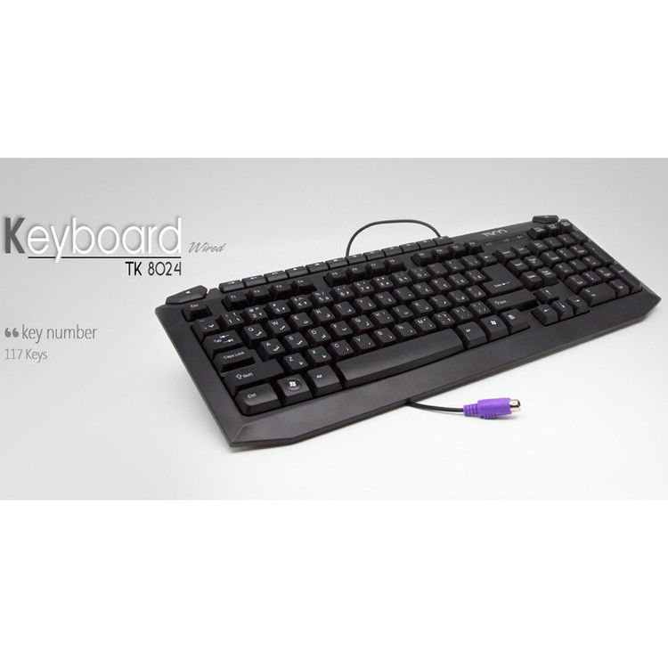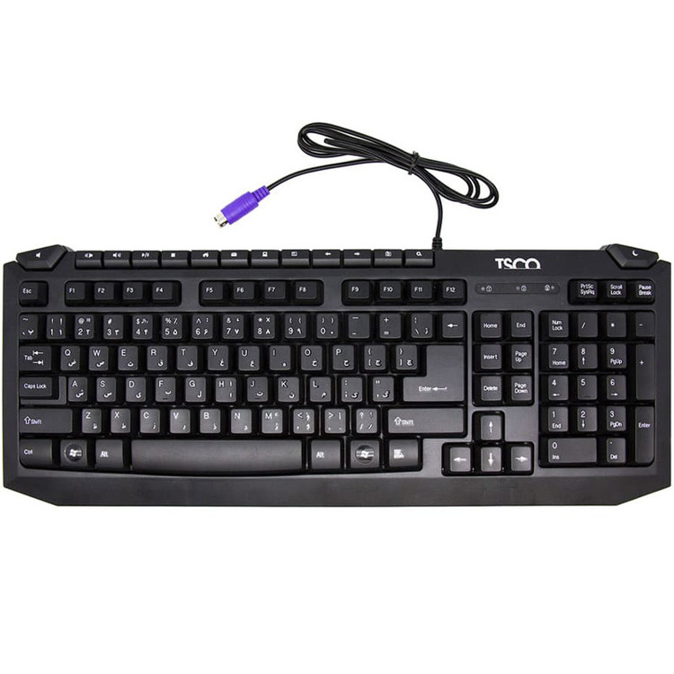 صفحه کليد «TSCO» مدل TK-8024 PS2 با طول کابل 1.3 متر و در ابعاد 161x25.5x438 ميليمتر توليد شده و در میان هم رده های خود از کیفیت ساخت و ارگونومی مناسبی برخوردار است. اين کيبورد داراي فضاي بسيار کم بين کليدها بوده که مانع از ورود گرد و غبار است . اين کيبورد به صورت باسيم و با استفاده از پورت PS2 به کامپيوتر و يا لپتاپ شما متصل ميشود. کيبورد TK-8024 PS2 يک صفحهکليد مالتيمديا با 117 عدد کليد است و جنس کليدهاي اين کيبورد از پلاستيک معمولي و مات ميباشد. حروف نوشته شده روي کليدهاي اين کيبورد از نوع چاپ Silk است که اين نوع چاپ باعث بالارفتن کيفيت نوشتههاي روي هر کليد ميشود. با وجود کیبورد TSCO مدل TK-8024 PS2 دیگر می توانید به راحتی متن های دلخواه خود را بدون اذیت شدن انگشتانتان تایپ کنید و همچنین دارای پایه های ضد لغزش می باشد که از لیز خوردن کیبورد بر روی سطوح مختلف جلوگیری می کند. عمر ضربه پذیری کلیدهای این کیبورد به 10 میلیون ضربه می رسد که کیفیت محصول را بالاتر برده است.