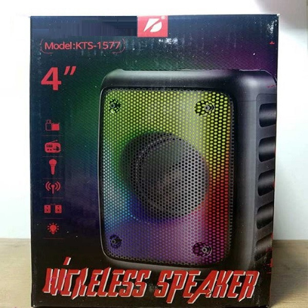 اسپیکر بلوتوث قابل حمل KTS با توان خروجی بالا و ظاهر شیک و زیبا میتواند انتخاب خوبی برای گوش دادن و لذت بردن از موزیک دلخواهتون باشد. این اسپیکر دارای باند 4 اینچی و دارای رقص نور می باشد که هنگام پخش موزیک زیبایی چندانی به اسپیکر میدهد. پشتیبانی از کارت حافظه و فلش مموری ، بلوتوث ، و قابلیت اتصال میکروفن از ویژگی های این اسپیکر قدرتمند می باشد .