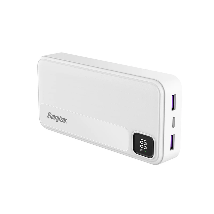 پاوربانک (PowerBank) مدل UE20035PQ از سری پاوربانکهای 20000 میلیآمپر شرکت انرجایزر و با بکارگیری فناوری فست شارژ به منظور شارژرسانی سریع به تلفنهای هوشمند با سیستم عامل اندورید و iOS و تبلتها تولید شده است.پاوربانک UE20035PQ دارای 3 پورت میباشد که شامل یک پورت مشترک ورودی/خروجی تایپ سی، دو پورت خروجی USB-A است. پورت ورودی به همراه نرخ ولتاژ و جریان آن عبارتند از: پورت Type-C ورودی: 5V/2A – 9V/2A نرخ ولتاژ و جریان پورتهای خروجی این کالا نیز عبارتند از: پورت USB-A خروجی: 4.5V/5A – 5V/4.5A – 5V/3A – 9V/2A – 12V/1.5A پورت Type-C خروجی: 5V/2A – 9V/2.22A – 12V/1.5A این پاوربانک با حداکثر توان خروجی 22.5 وات دارای نمایشگر دیجیتال جهت نمایش میزان شارژ است. همچنین این محصول دارای وزن 425 گرم است. ابعاد این شارژر همراه نیز 147.5 × 69 × 28.8 میلیمتر است.این پاوربانک در رنگهای سفید و مشکی با ظرفیت 20000 میلی آمپر دارای باتری لیتیوم پلیمری است. همچنین این کالا از رویه ضد خش و جنس بدنه آن نیز پلاستیک ABS است که مهمترین خاصیت آن ضد اشتعال بودن کالاست. از اقلام همراه این پاوربانک فست شارژ نیز میتوان به دفترچه راهنما و کابل شارژر اشاره کرد.