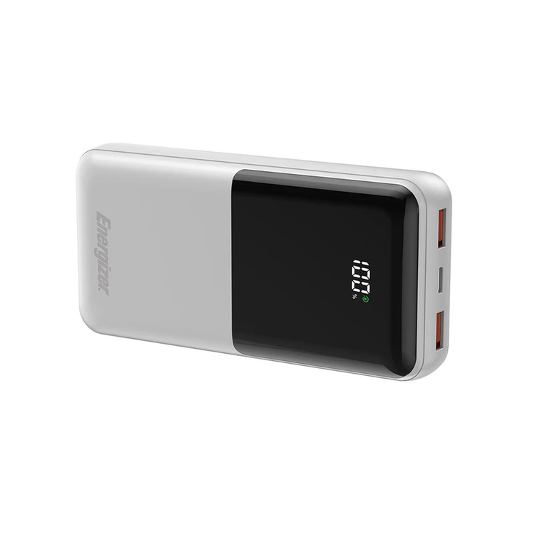 پاوربانک (PowerBank) مدل UE20069PQ از سری پاوربانکهای 20000 میلیآمپر شرکت انرجایزر و با بکارگیری فناوری فست شارژ به منظور شارژرسانی سریع به تلفنهای هوشمند با سیستم عامل اندورید و iOS و تبلتها تولید شده است.پاوربانک UE20069PQ دارای 3 پورت میباشد که شامل یک پورت مشترک ورودی/خروجی تایپ سی و 2 پورت خروجی USB-A است. پورتهای ورودی به همراه نرخ ولتاژ و جریان آن عبارتند از: پورت Type-C ورودی: 5V/3A – 9V/2A نرخ ولتاژ و جریان پورتهای خروجی این کالا نیز عبارتند از: پورت USB-A1/A2 خروجی: 5V/3A – 9V/2A – 10V/2.25A – 12V/1.5A پورت Type-C خروجی: 5V/2A – 9V/2.22A – 12V/1.5A این پاوربانک با حداکثر توان خروجی 22.5 وات دارای نمایشگر دیجیتال جهت نمایش میزان شارژ است. همچنین این محصول دارای وزن 420 گرم است که در کلاس وزنی پاوربانکهای سبک وزن قرار دارد. ابعاد این شارژر همراه نیز 144 × 69 × 30 میلیمتر است.این پاوربانک در رنگهای سفید و مشکی با ظرفیت 20000 میلی آمپر دارای باتری لیتیوم پلیمری است. همچنین این کالا از رویه ضد خش و جنس بدنه آن نیز پلاستیک ABS است که مهمترین خاصیت آن ضد اشتعال بودن کالاست. از اقلام همراه این پاوربانک فست شارژ نیز میتوان به دفترچه راهنما و کابل شارژر اشاره کرد.