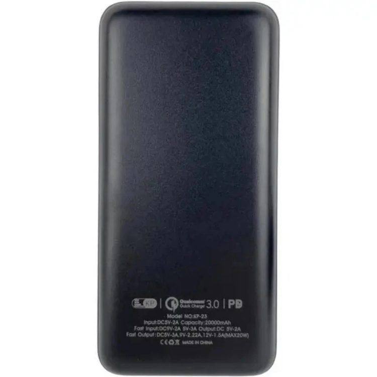 پاور بانک 20000 کی پی مدل KP-23 به همراه یک عدد کابل شارژ 20 سانتیمتری ارائه میشود، این محصول با داشتن دو پورت خروجی USB و USB-C، بهترین همراه شما در خارج از منزل، محل کار و یا هنگام سفر خواهد بود. که از پورت USB-C این محصول بعنوان خروجی و ورودی میتوان استفاده نمود. این محصول میتواند به طور خودکار و هوشمند، ورودی مناسب برای هر دیوایس را در نظر بگیرد. با استفاده از پاور بانک KP-23 میتوانید تمامی انواع گجتهای هوشمند مانند دوربین، تبلت، گوشی را در طول روز شارژ کنید.