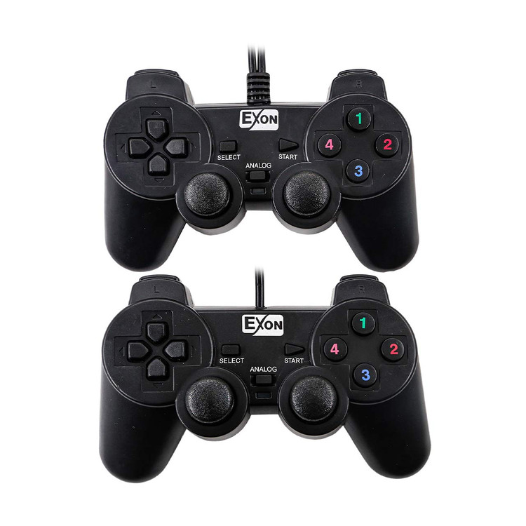 دسته بازی با سیم دوبل شوک دار EXON مدل UC-JS704S2 - مشکی