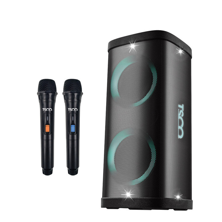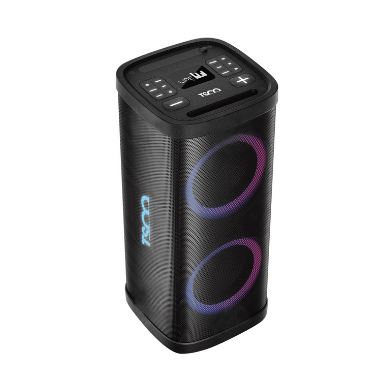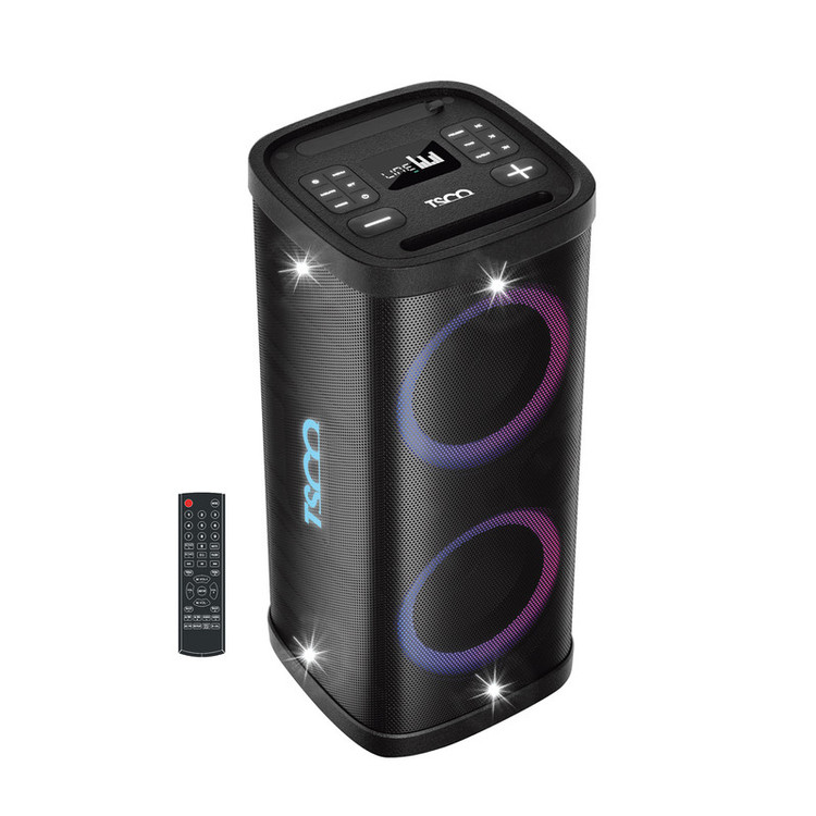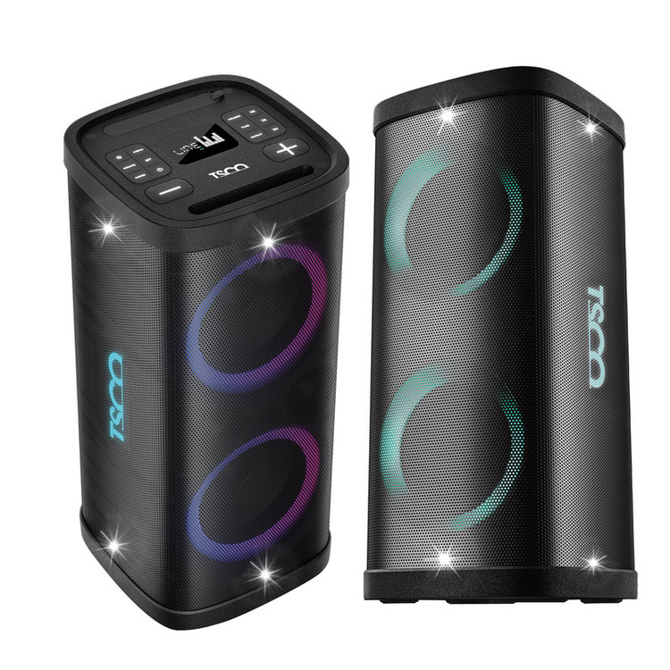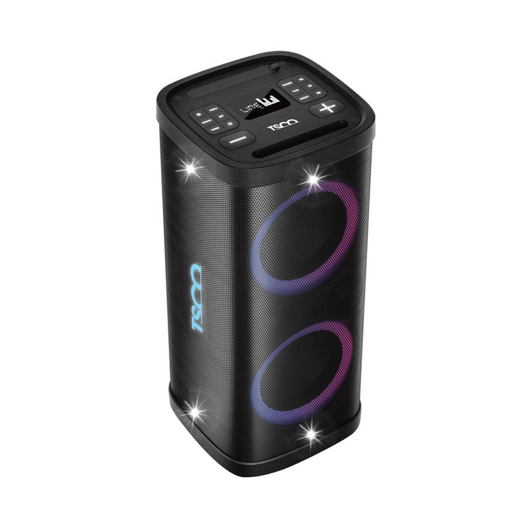 اسپیکر دارای ابعاد 267x270x595 میلیمتر بوده و وزن آن تقریباً 8.6 کیلوگرم است. تمامی این ویژگیها در یک بدنه سیاهرنگ و با جزئیاتی همچون 6 چراغ ایستروبی (strobe lights)، چراغهای دایرهای در جلو و لوگوی لیزری در کنارهها، و 2 ووفر 6.5 اینچی و 2 توییتر 2.5 اینچی ارائه میشوند. کنترل پنل این اسپیکر در بالای آن قرار گرفته است. در این بخش میتوانید یک نمایشگر برای نمایش اطلاعات موسیقی، 14 دکمه برای کموزیاد کردن صدا، تغییر بین حالتهای مختلف اتصال دستگاه مثل بلوتوث، TWS و... ، دکمههای کنترل مدیا، دکمه خاموش و روشن و چندین دکمه مختلف دیگر را مشاهده کنید. در بالای این پنل با کنارزدن پوشش لاستیکی محافظ میتوانید پورتهای خروجی و ورودی را مشاهده کنید. در این بخش میتوانید پورت USB، خروجی هدفون با جک 3.5 میلیمتری، دو ورودی میکروفن با پورتهای 6.35 میلیمتری را مشاهده کنید. اسپیکر تسکو مدل TS 1918 ویژگیهای بینظیری دارد و تجربه گوش سپردن به موسیقی و فیلم را به سطح تازهای میبرد. توان اسمی این دستگاه 6000 وات و توان واقعی آن 40RMS است. این اسپیکر از اتصال بلوتوث و قابلیت TWS پشتیبانی میکند. این ویژگیها به کاربران اجازه میدهد تا صدایی فراگیر و پویا تجربه کنند. TS 1918 همچنین از ورودیهای متنوعی از جمله USB، کارت حافظه TF، بلوتوث، ورودی Aux، TWS، و ویژگیهای دیگر پشتیبانی میکند. این اسپیکر همچنین دارای پنج حالت تنظیم مساویسازی صدا است که به شما امکان میدهد تا تنظیمات صدا را بهتناسب سلیقهٔ خودتنظیم کنید. اسپیکر پرتابل تسکو مدل TS 1918 به یک باتری لیتیومی با ظرفیت 7.4 آمپر و 3600 میلیآمپر بر ساعت مجهز شده است. دامنه اتصال این اسپیکر حرفهای تسکو بین 20 تا 30 متر است و شما میتوانید از فواصل دورتر بهراحتی به آن وصل شوید. بهعلاوه زمان پخش موزیک در حالتهای مختلف صدا (حداکثر، میانه و پایین) به ترتیب یک و نیم ساعت، سه ساعت و نیم، و شش ساعت است. این اسپیکر دارای سیگنال به نویز (S/N Ratio) حدود 68 دسیبل (±2 دسیبل)، و زمان شارژ آن تقریباً 3.5-4 ساعت است. TS 1918 همچنین از رادیو در دامنه فرکانسی 87. تا 108.0 مگاهرتز پشتیبانی میکند. شما میتوانید فرمتهای WAV، FLAC، WMA و MP3 را با این TS 1918 پخش کنید.