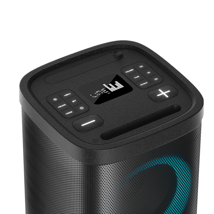 دارای رقص نور / پشتیبانی از ضبط صدا با میکروفون / دارای نمایشگر و محفظه توری در ۳ طرف / دارای پورت USB , BT , SD CARD , OPTICAL , DIGITAL COXIAL TWS , AUX / وضوح صدا 68 دسیبل / رادیو
