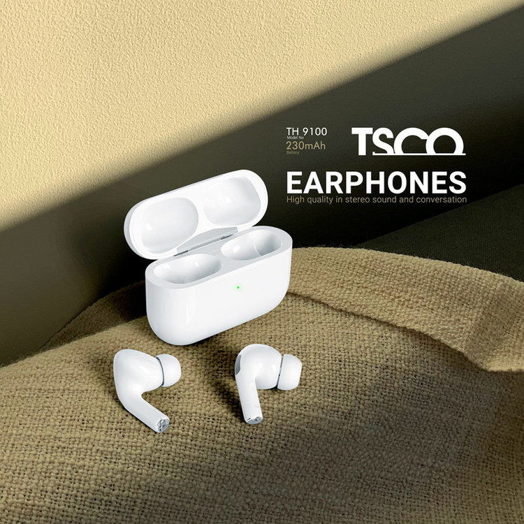 سالانه انواع مختلف ایرفونها به بازار عرضه میشوند. یکی از مدلهای بسیار جذاب برند تسکو مدل TH 9100 هست که با طراحی مشابه اپل پرو خود برای بسیاری از کاربران جذاب است. این ایرفون با همان طراحی، همان ارگونومی اما با قیمت مناسب تر به بازار عرضه شده است. از لحاظ فنی ایربادز TH 9100 بسیار ریسپانسیو عمل میکند، هم هنگام در آوردن از گوش به صورت خودکار توقف پخش دارد. علاوه بر ویژگیهایی که گفته شد این ایربادز از شارژ خودکار هم پشتیبانی میکند. در این معرفی قصد داریم نگاه نزدیکی به ایربادز تسکو مدل TH 9100 داشته باشیم. پس با ما همراه باشید. مشخصات ظاهری ایرفون تسکو مدل TH 9100 روی کیس این ایربادز تسکو یک چراغ LED جهت نمایش روشن بودن و شارژ قرار گرفته است. برای زیاد و کم کردن صدا روی هردو ایربادز قابلیتی طراحی شده که میتوانید با زدن دو ضربه روی گوشی چپ صدا را کم کرده و با دو بار ضربه روی گوشی راست صدا را زیاد کنید. جنس رابط کابل ایربادز TH 9100 از جنس ABS و PC بوده و مقاومت خوبی در برابر انواع ضربه دارد. طول کابل شارژ این دستگاه حدوداً یک متر بوده و برای افرادی که از پریز فاصله دارند نیز بسیار کاربردیست. در نتیجه لازم نیست نگران شارژ شدن دستگاه خود باشید. این محصول در رنگ سفید به بازار عرضه شده است. به همراه این ایربادز یک کابل لایتنینگ، 3 عدد لاستیک سیلیکونی، یک دفترچه راهنما و کاور کیس ایربادز ارسال میشود که خیال کاربر را از آسیبهای وارد به آن راحت میکند. میکروفونها در قسمت انتهایی گوشیها قرار گرفتهاند. مشخصات فنی ایرفون تسکو مدل TH 9100 نحوه اتصال ایربادز TH 9100 به صورت بلوتوثی بوده و امکان برقراری تماس و گوش دادن به موسیقی را فراهم میکند. نسخه بلوتوثی که این ایربادز پشتیبانی میکند 5.1 بوده و به دلیل جدید بودن میزان قطعی و بیکیفیت شدن صدا به کمترین میزان خود میرسد. محدوده عملکرد این محصول حرفهای تسکو تا 10 متر است که بتوانید در فاصله دور نیز تماس خود را پاسخ دهید. نوع باتری به کار رفته در این محصول لیتیومی بوده و کیس آن با ظرفیت 230 میلی آمپر ساعت و گوشیهای آن 30 میلی آمپر هستند. این هندزفری علاوه بر قابلیت پخش موسیقی امکان مکالمه نیز دارد. مدت زمان استفاده در هنگام پخش موسیقی حدود 4.5 ساعت و هنگام تماس به 4 ساعت میرسد.
