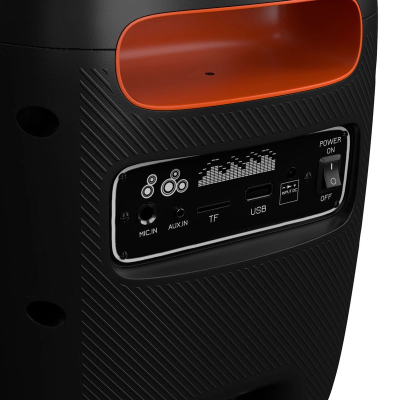 مشخصات دیگر : دارای نمایشگر عملکرد - دارای قابلیت اتصال دو اسپیکر بوسیله تکنولوژی TWS - دارای LED و رقص نور