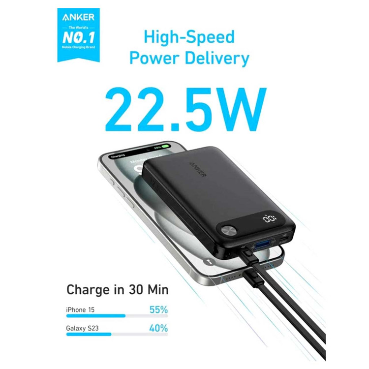 پاوربانک (PD و فست شارژ) Anker 22.5W 10000mAh مدل A1257 - مشکی