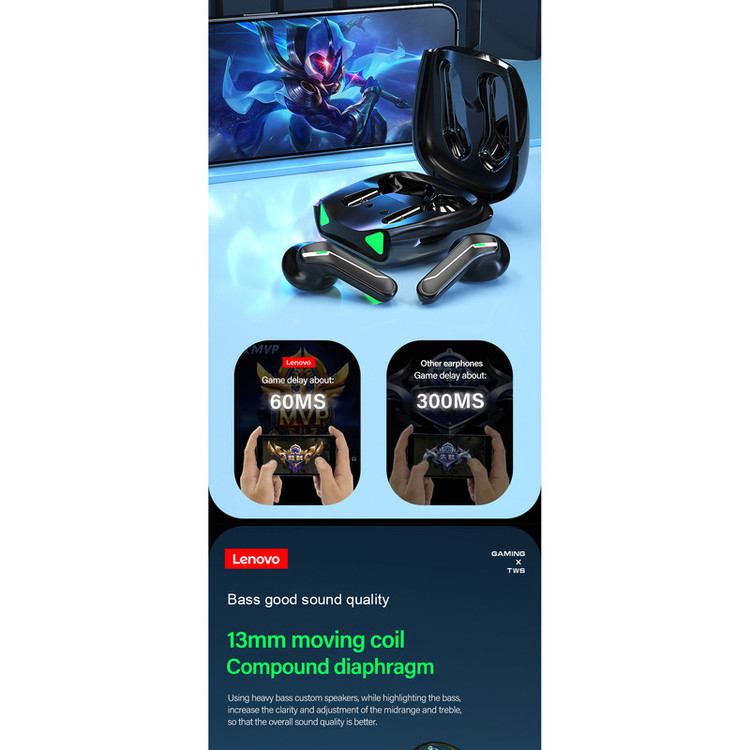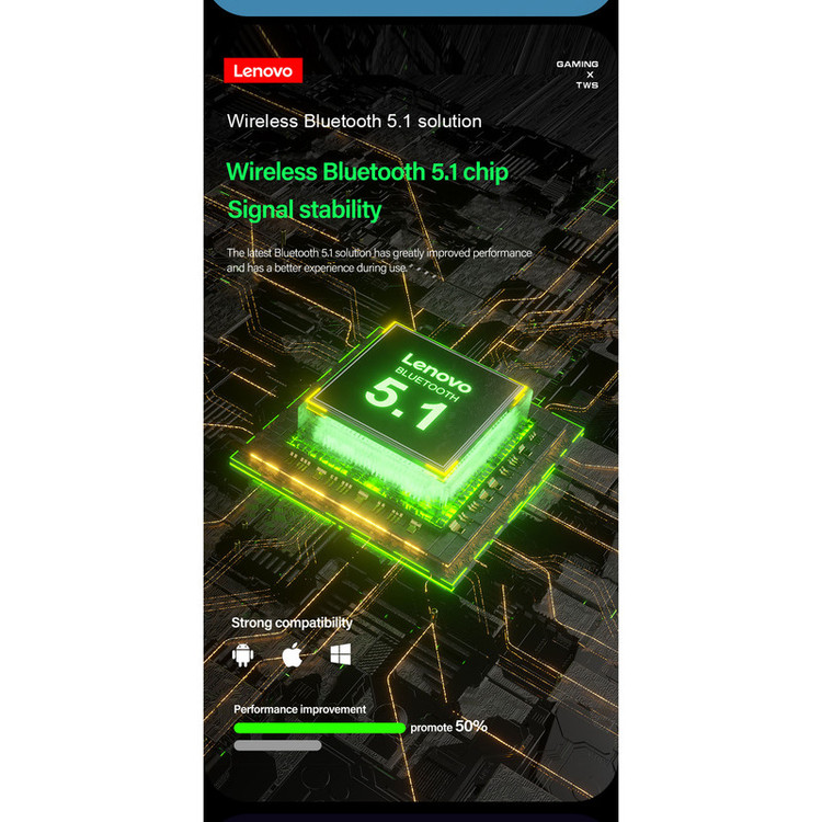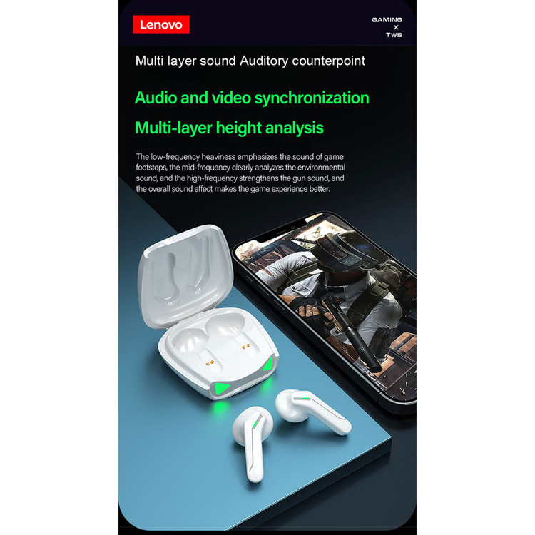 هندزفری بی سیم لنوو Lenovo XT85 True Wireless Earbuds کمپانی لنوو که از برندهای نام آشنای حوزه فناوری به شمار میرود، این روزها بیشتر در زمینه طراحی و تولید هندزفری فعالیت میکند. هندزفری بلوتوث دو تایی لنوو Lenovo XT85 Wireless Earphone یک هندزفری بی سیم با ظاهری جذاب و کاملا گیمینگ است که شما را در حال و هوای بازی نگه میدارد. اگر به ظاهر هندزفری بی سیم لنوو Lenovo XT85 True Wireless Earbuds دقت کنید، خواهید فهمید که هندزفری در قسمت بالایی دارای لبهای است که باعث پایداری بیشتر هندزفری درون گوش میشود. جنس گوشی و بدنه ی این محصول از پلاستیک ABS بوده که بسیار محکم و مقاوم است. بر روی کیس این محصول LED به کار رفته که باعث زیبایی این محصول شده است. وزن 3.5 گرمی هر هندزفری را نیز در نظر بگیرید که در مجموع باعث شده تا در طولانی مدت امکان استفاده از آن را داشته باشید و کمتر خسته شوید. هندزفری بی سیم لنوو Lenovo XT85 دارای بلوتوث نسخه 5.1 است. با استفاده از این هندزفری می توان تا فاصله ده متری (بدون هیچ مشکلی) بدون افت کیفیت صدا را شنید و به موسیقی گوش داد. ا تصال آسان، انتقال وایرلس بالا بدون تداخل سیگنالی از قابلیت های بلوتوث 5.1 می باشد. بُرد بلوتوث این محصول حدوده 10 متر می باشد. اگر یکبار به هندزفری Lenovo XT85 متصل شوید دیگر نیاز به اتصال مثل سری اول نیست؛ کافی است درب کیس را باز کنید و بلوتوث دستگاه مورد نظرتان را روشن کنید، این هندزفری به صورت خودکار به دستگاه شما متصل می شود. بعلاوه این محصول دارای حالت تاخیر بسیار پایین (60 میلی ثانیه) می باشد که شما می توانید بدون نگرانی از تاخیر ایجاد شده به دیدن فیلم و یا بازی کردن بپردازید. بر روی هندزفری، پنلهای لمسی قرار داده شده است که با لمس کردن این پنلها میتوانید کاربردهای مختلفی را که کیو سی برای شما در نظر گرفته است انجام داده و در کل کاربری راحتتری داشته باشید. با استفاده از پنل های لمسی شما نیاز کمتری به گوشی داشته و می توانید با فرمان های که به پنل لمسی می دهید بسیار از کار ها مانند تغییر اهنگ، قطع و وصل اهنگ، قطع و وصل تماس و .. را انجام دهید. این پنلهای لمسی روی هندزفری بی سیم لنوو Lenovo XT85 قرار داده شدهاند. کاهش نویز HD در هنگام تماس باعث می شود صداهای اضافه اطراف کم شده