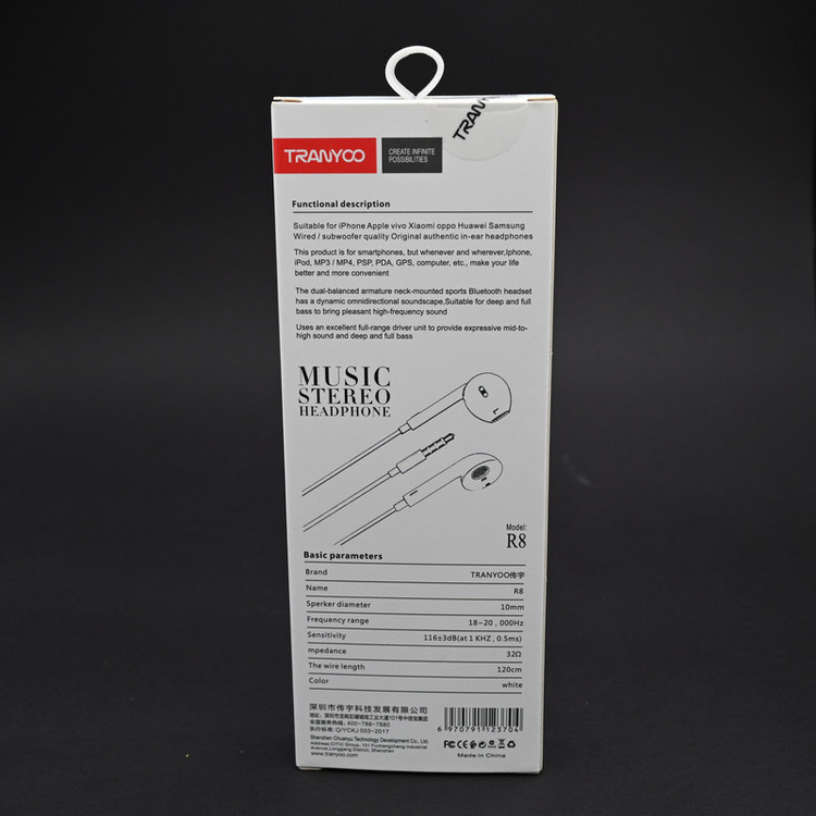هدفون داخل گوشی ترانیو R8 با طراحی ارگونومیک و حرفهای، به آسانی و بدون احساس آزاردهنده در گوش کاربر جای گرفته و مانع از ایجاد احساس ناخوشایند در کاربر میشود.دارای ساختاری است که باعث بهتر شنیده شدن جزئیات صداهای باس، میانه و نوتهای بالا میشود. صدای شفاف و واضح هدفون به خوبی روح کاربر را لمس میکند. از ویژگی های این محصول کیفیت صدای HD ، میکروفون با کیفیت ، بیس بسیار قوی ، صدای واضح و شفاش ، طول سیم : 120cm است .