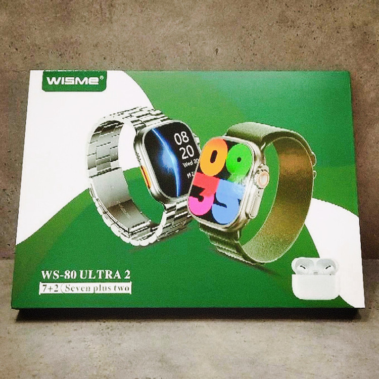 اقلام همراه : یک عدد ساعت هوشمند WS-80 ultra2، یک عددایرپاد پرو، 6 بند پارچه ای و سیلیکونی و 1بند فلزی،1عدد سیم شارژ وایرلس ساعت هوشمند و 1عدد سیم شارژ ایرپاد پرو