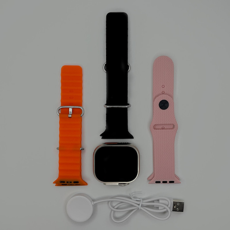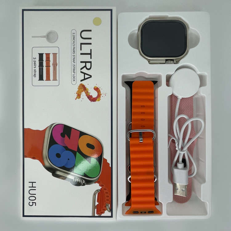 ساعت هوشمند مدل HU05 ULTRA2 یک ساعت هوشمندجذاب و مدرن است که به شما امکان میدهد با تمام ویژگیهای جذابش به راحتی در محل کار، ورزش و حتی مواقع رسمی، خوش تیپ و شیک باشید.این ساعت هوشمند دارای قابلیتهای فراوانی است. با قابلیت مکالمه (از طریق اتصال به بلوتوث) و پخش موسیقی، شما میتوانید از تماس با دوستان و موسیقیهای مورد علاقهتان لذت ببرید. اما قابلیت برجستهتر این ساعت هوشمند، سنسورهای سلامتی فراوانی است که دارد. با پایش ضربان قلب، فشار خون، اکسیژن خون و…، این ساعت به شما کمک میکند تا سلامتی خود را بررسی کرده اما لطفاً توجه داشته باشید که این ساعت به هیچوجه، یک وسیله پزشکی نیست و تمامی دادههای مربوط به پایش سلامت، صرفاً به منظور اطلاع کلی شماست ساعت هوشمند HU05 ULTRA2 دارای سه عدد بند سلیکونی قابل تعویض داخل جعبه میباشد. شارژر داخل جعبۀ ساعت از نوع وایرلس و مگنتی است. چنانچه گفته شد، بند این مدل، قابل تعویض با تمام بندهای اپل واچ میباشد.