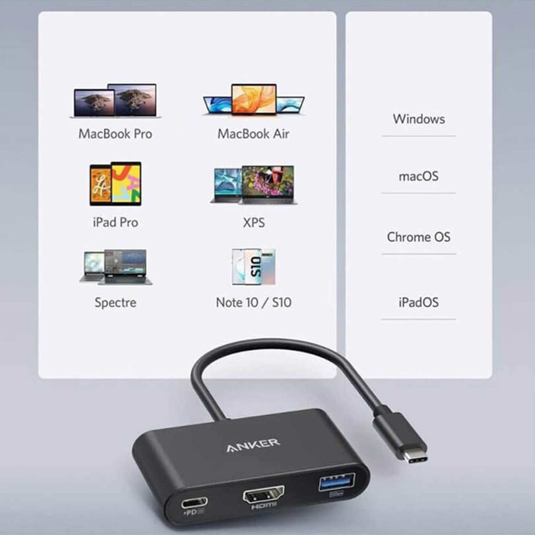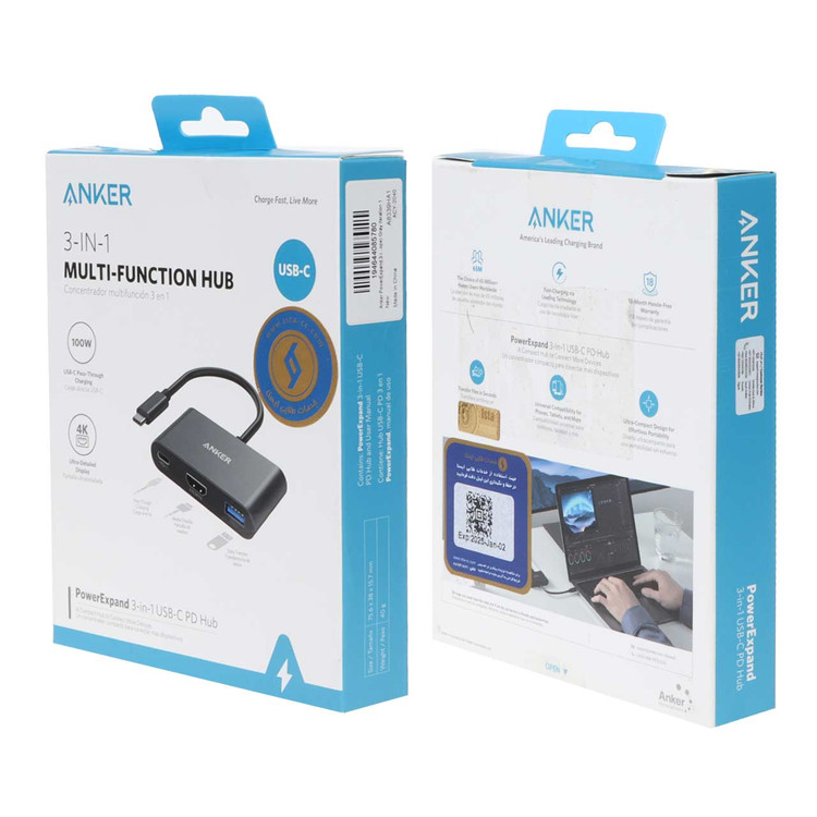 هاب 3 پورت ANKER USB-C مدل A8339 - خاکستری