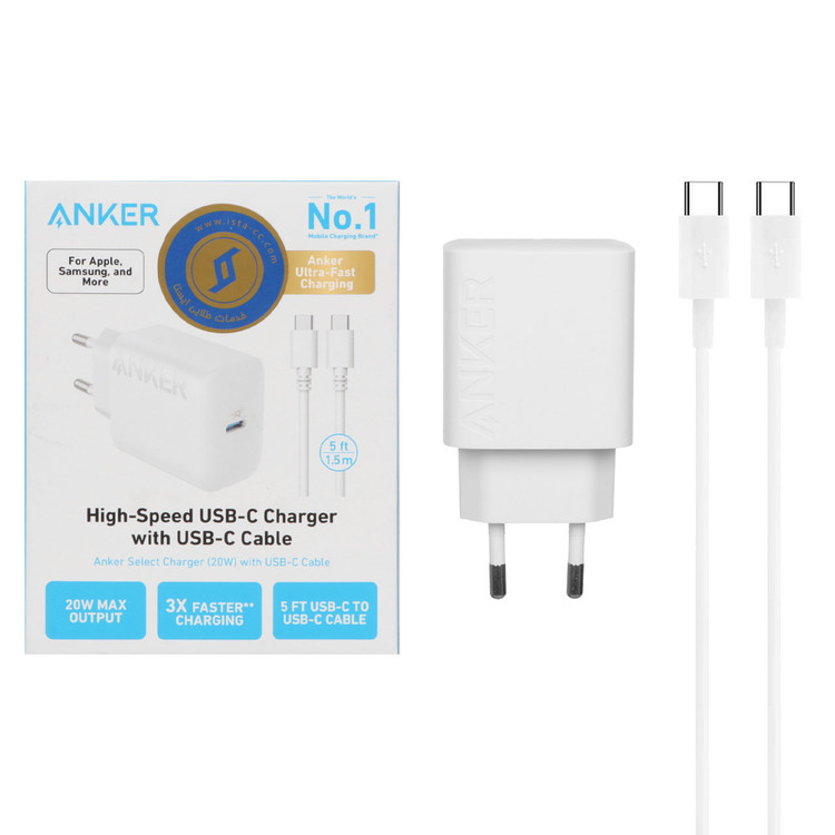 شارژر دیواری ANKER مدل B2347 با تکنولوژی PD 20W به همراه کابل شارژ TYPE-C - سفید