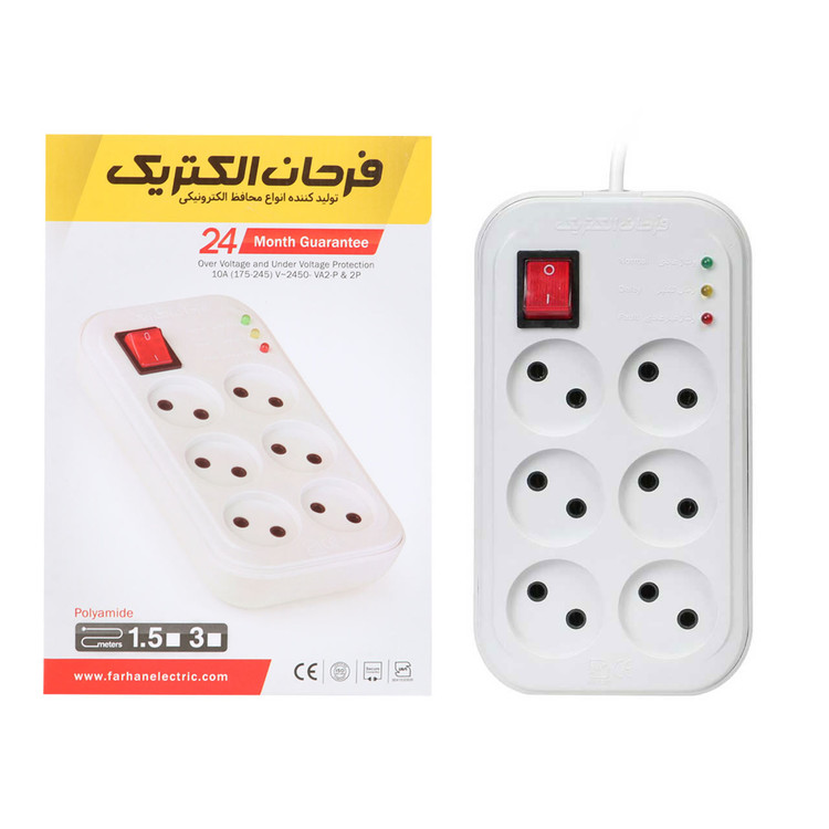 چند راهی برق 6 خانه فرحان الکتریک کلید دار 1.5 متری مدل FP666