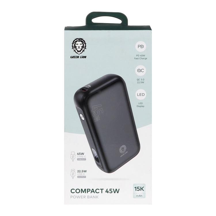 پاوربانک (PD و فست شارژ) Green Lion 22.5W 15000mAh مدل GNCP45WPB15BK - مشکی