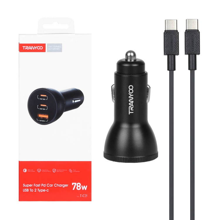 شارژر فندکی فست سه پورت Tranyoo مدل T-C25 78W - مشکی