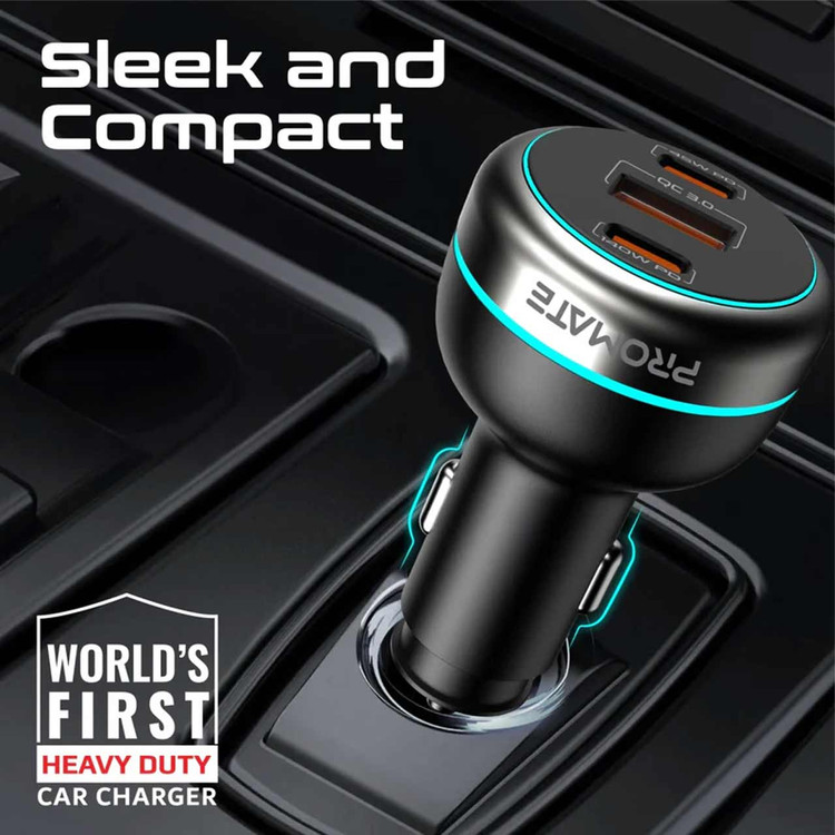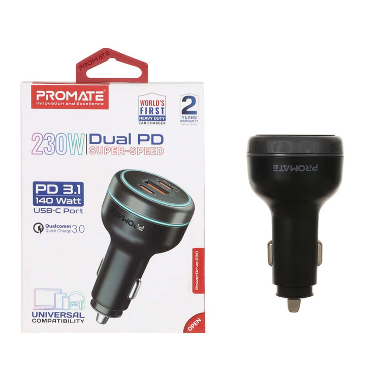 شارژر فندکی فست و PD سه پورت Promate مدل PowerDrive-230 230W - مشکی